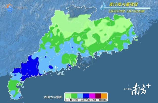 省气象台预计,10日广东中南部市县仍有大雨,局部暴雨或大暴雨,雷雨时局部伴有6—8级短时大风;11日全省雨势明显减弱,但南部沿海市县仍有中雨局部暴雨。